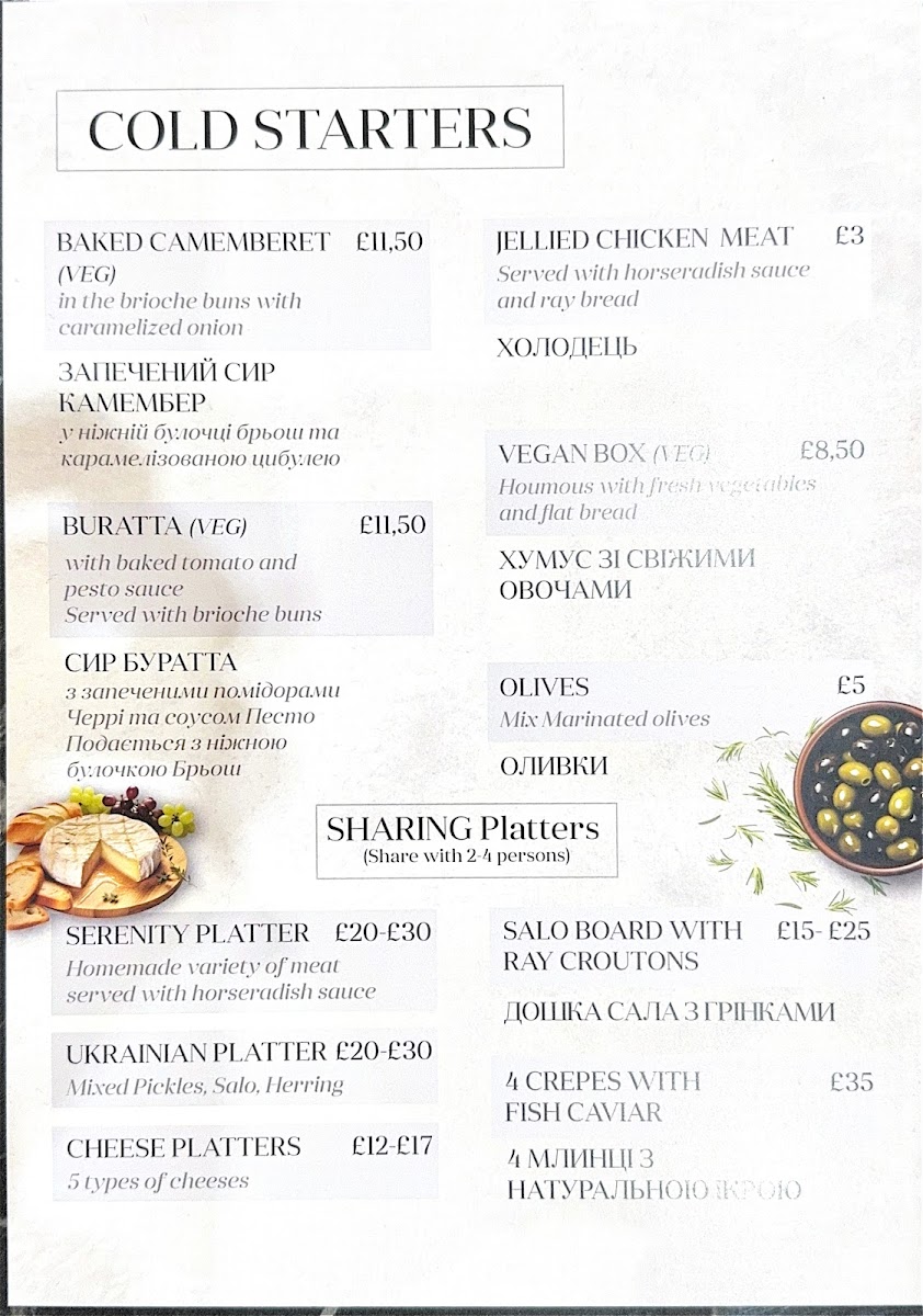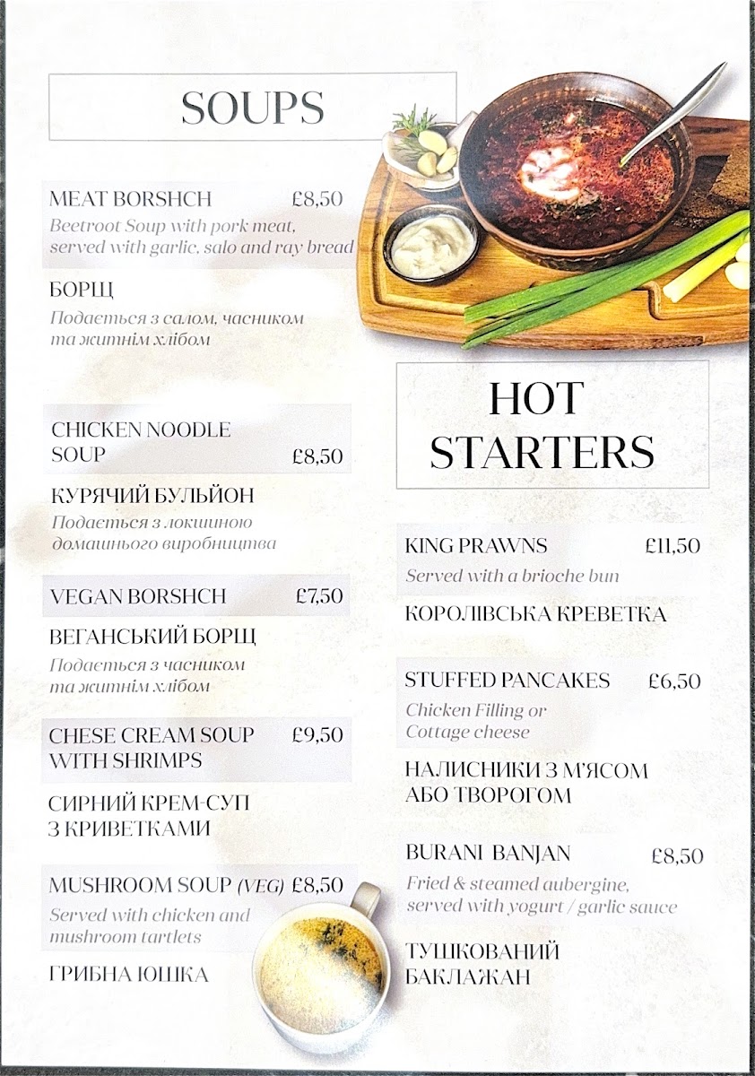 Welcome to Serenity Restaurant, a delightful haven for those craving authentic Ukrainian cuisine. Nestled in Harrow, this charming eatery offers a diverse menu that captivates the palate. The standout dish, borscht, brimming with flavors, has received rave reviews from patrons who describe it as "spot on!"